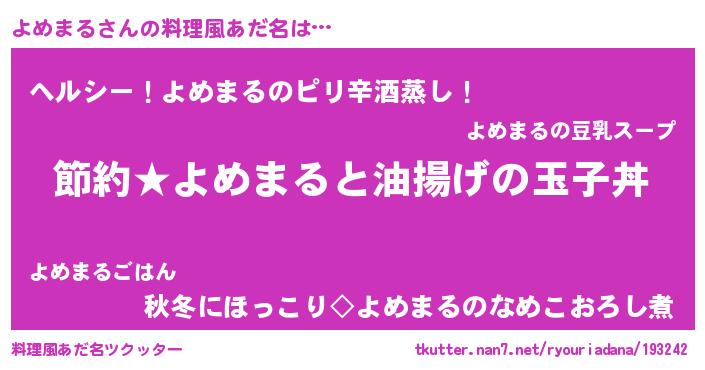 | 意味不明あだ名 | 『ペロリンよめまる』『自称よめまる』 |