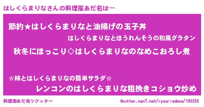 | 男性向けラノベタイトル風あだ名 | 『はしくらまりなに滅ぼされるだけの簡単なお仕事です』 |