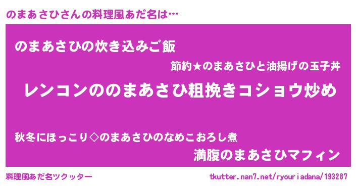| ヘコむあだ名 | 『のまあさひ(苦笑)』『のまっふぃ~』 |