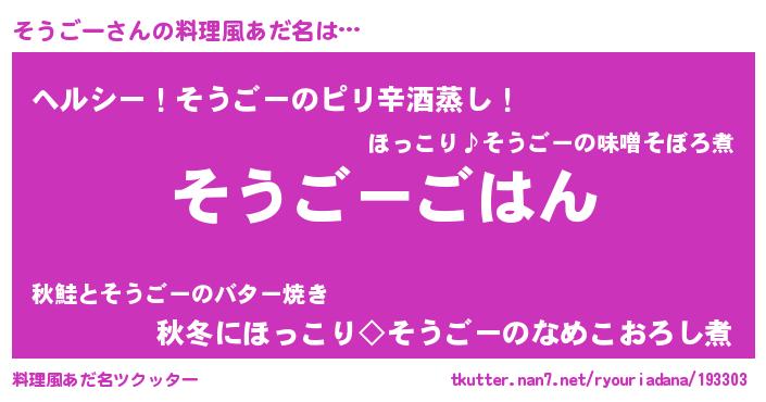 | 胡散臭い通販商品みたいなあだ名 | 『テレビで話題の高麗人参…その名も「そうごー」』 |