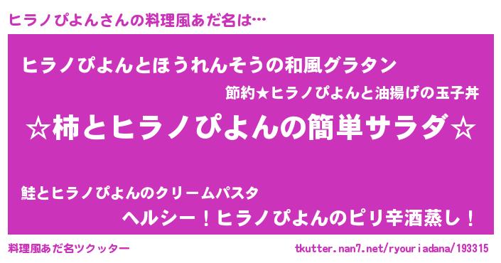 | 男性向けラノベタイトル風あだ名 | 『緋弾のヒラノピヨン』 |