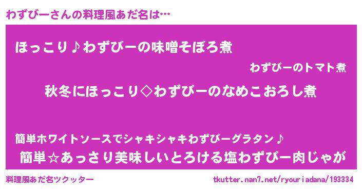 | 意味不明あだ名 | 『ペロリンわずびー』『永久保存わずびー』 |