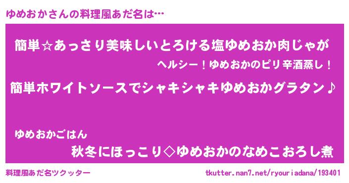 | ヘコむあだ名 | 『ゆめっちょ』『ゆめおか(笑)』 |