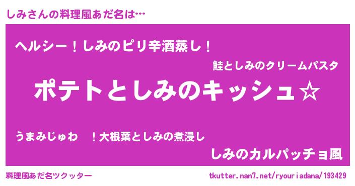 | 胡散臭い通販商品みたいなあだ名 | 『伝統あるサプリメント…その名も「しみ」』 |