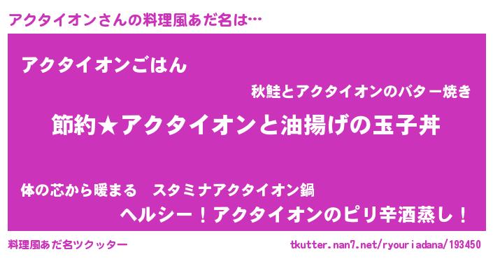 | 男性向けラノベタイトル風あだ名 | 『アクタイオンアートオンライン』 |