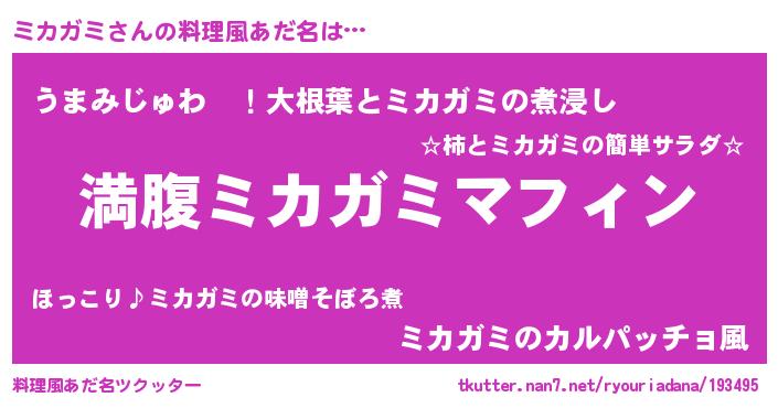 | 胡散臭い通販商品みたいなあだ名 | 『絶対に幸福をもたらす健康食品…その名も「ミカガミ」』 |