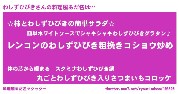 | 女子向けラノベタイトル風あだ名 | 『わしずひびきなんてお断りですっ。』 |