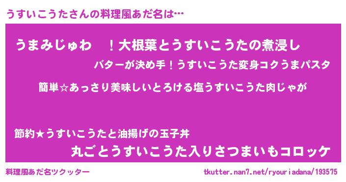 | 胡散臭い通販商品みたいなあだ名 | 『前代未聞の健康食品…その名も「うすいこうた」』 |