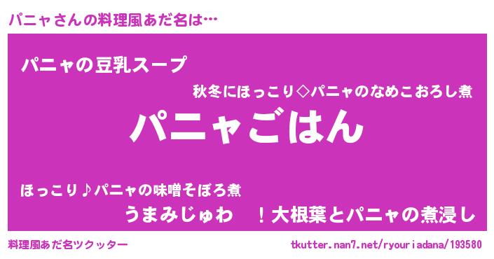 | 男性向けラノベタイトル風あだ名 | 『パニャスレイヤー』『パニャの憂鬱』 |