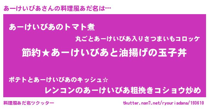 | 欧米人風あだ名 | 『マイケルあーけいびあ』 |