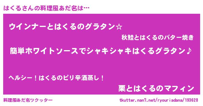 | 男性向けラノベタイトル風あだ名 | 『はくるの嫁は女の子じゃないと思った?』 |