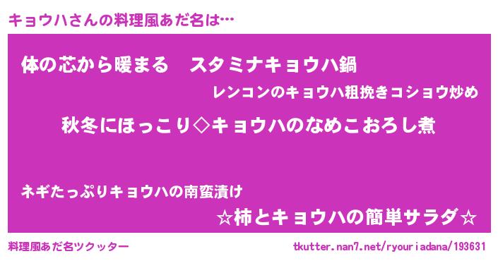 | 意味不明あだ名 | 『キョウハフォーエバー』『自称キョウハ』 |