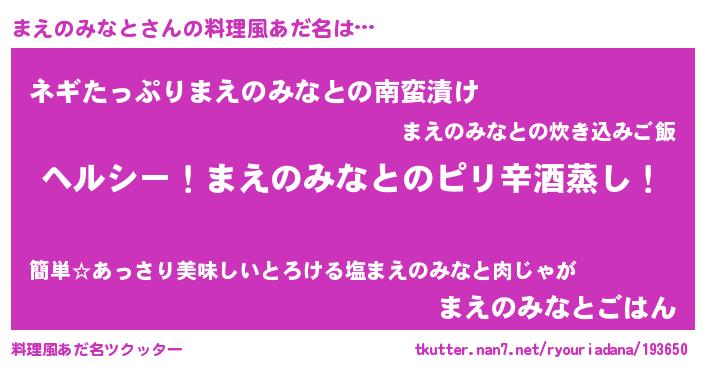| ヘコむあだ名 | 『まえにゅー』『まえのみなと(苦笑)』 |