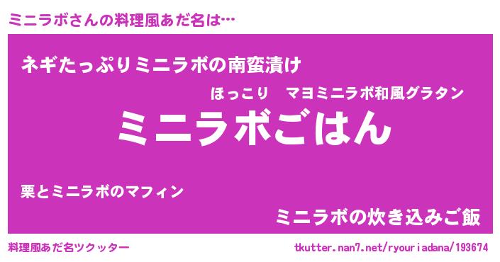 | 男性向けラノベタイトル風あだ名 | 『ミニラボスレイヤー』 |