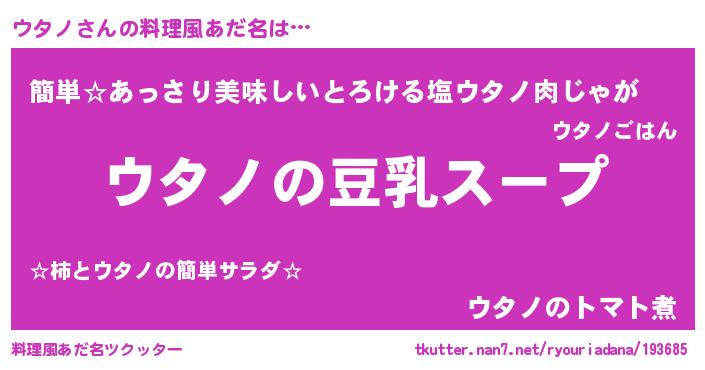 | 胡散臭い通販商品みたいなあだ名 | 『信頼と実績のサプリメント…その名も「ウタノ」』 |