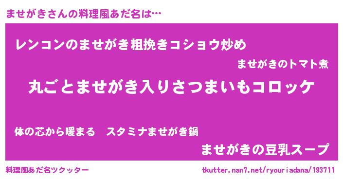 | 意味不明あだ名 | 『住所不定無職ませがき(81歳)』 |