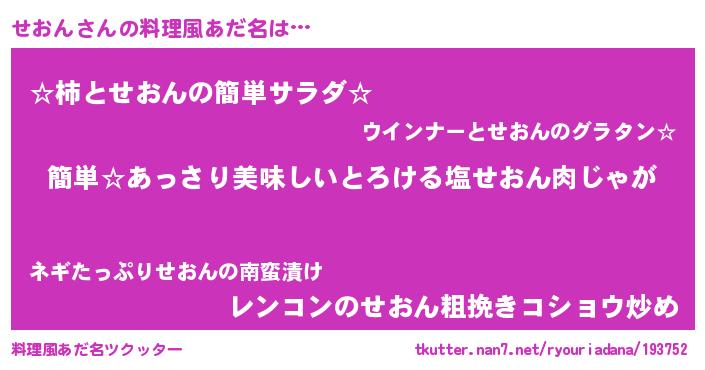 | ヘコむあだ名 | 『せおん(笑)』『豆乳』『せおにー』 |