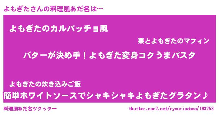 | 女子向けラノベタイトル風あだ名 | 『よもぎた恋絵巻』『よもぎた様がみてる』 |