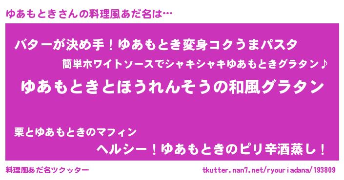| ヘコむあだ名 | 『ゆあっちょ』『ゆあもとき(苦笑)』 |