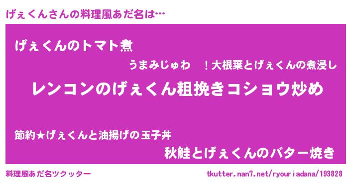 | 意味不明あだ名 | 『自称げぇくん』『永久保存げぇくん』 |