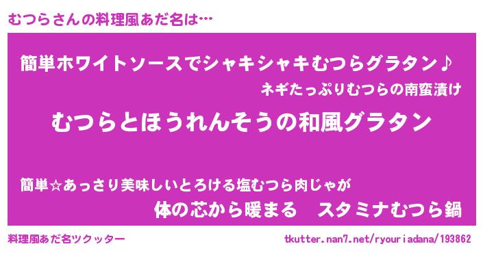 | 意味不明あだ名 | 『つくし科むつら属』『ペロリンむつら』 |