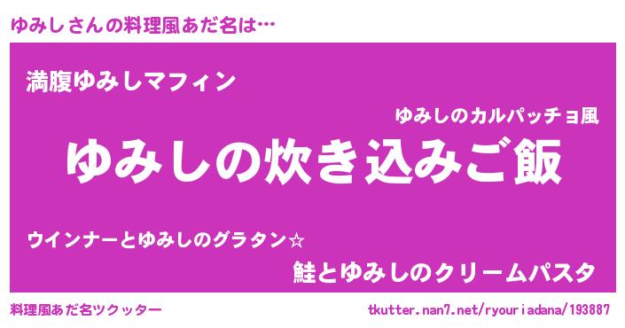 | 欧米人風あだ名 | 『ゆみし・ステッグマイヤー』 |