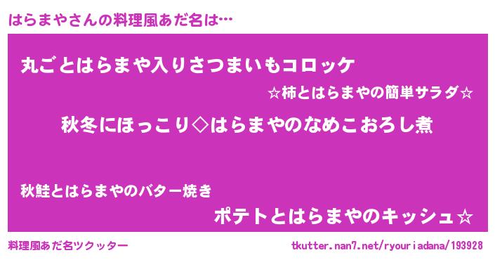 | 男性向けラノベタイトル風あだ名 | 『はらまやに滅ぼされるだけの簡単なお仕事です』 |