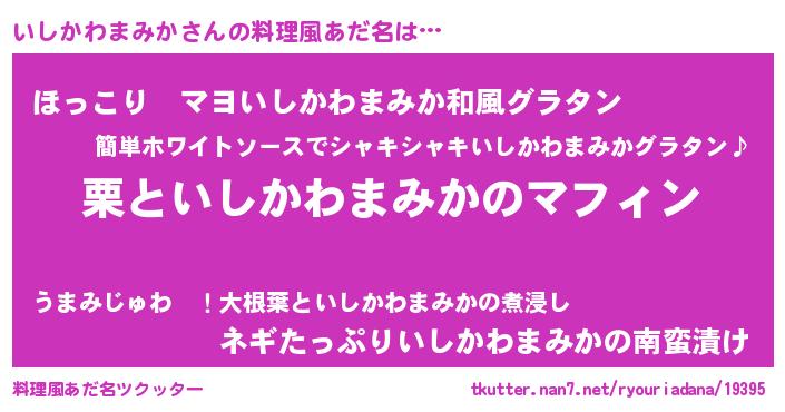 | 男性向けラノベタイトル風あだ名 | 『はたらくいしかわまみかさま!』 |