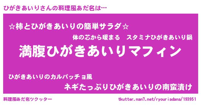 | 意味不明あだ名 | 『永久保存ひがきあいり』 |