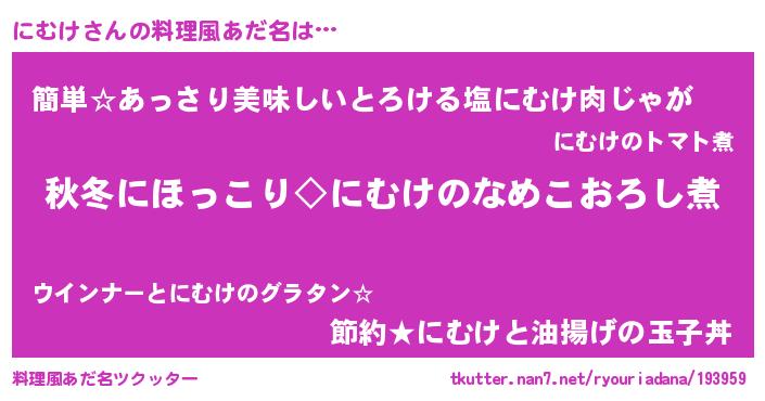 | ヘコむあだ名 | 『にむけ(笑)』『にむもー』『豆乳』 |