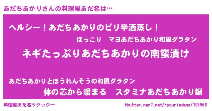 | ヒーロー風カッコイイあだ名 | 『スーパーアダチアカリ』『仮面アダダー』 |