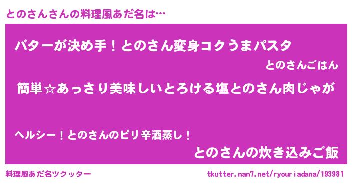 | 意味不明あだ名 | 『永久保存とのさん』『ニラ科とのさん属』 |