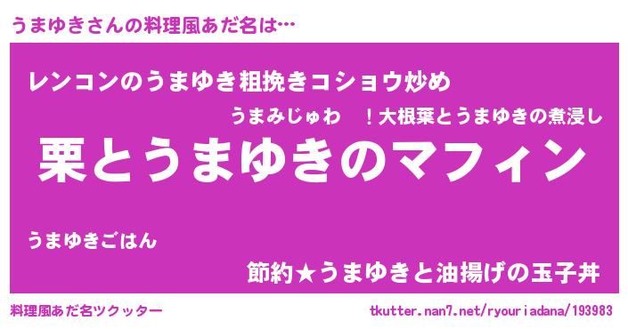 | 意味不明あだ名 | 『自称うまゆき』『ペロリンうまゆき』 |