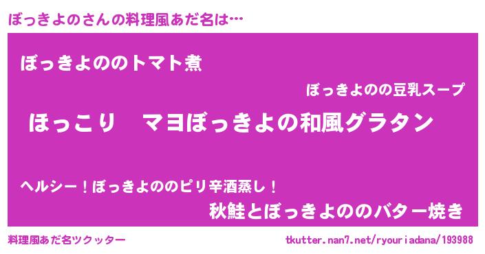 | 意味不明あだ名 | 『住所不定無職ぼっきよの(9歳)』 |