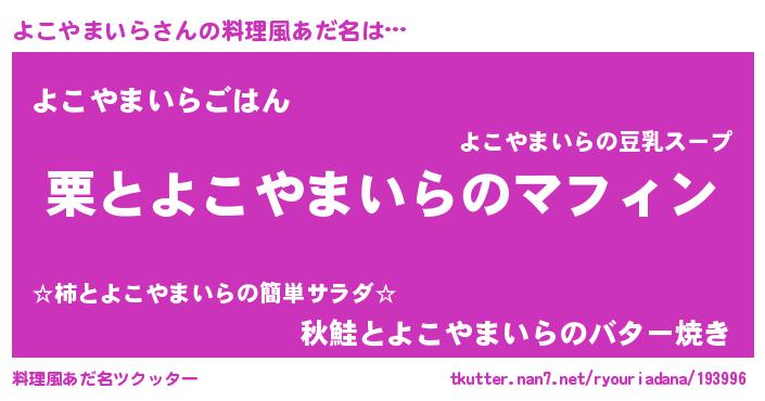 | 可愛いあだ名 | 『よこぷりん』『よこやまいらママ』 |