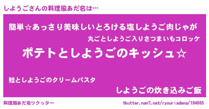 | ピコ太郎風あだ名 | 『シヨ六郎』『ピコシ郎』『シシ太郎』 |