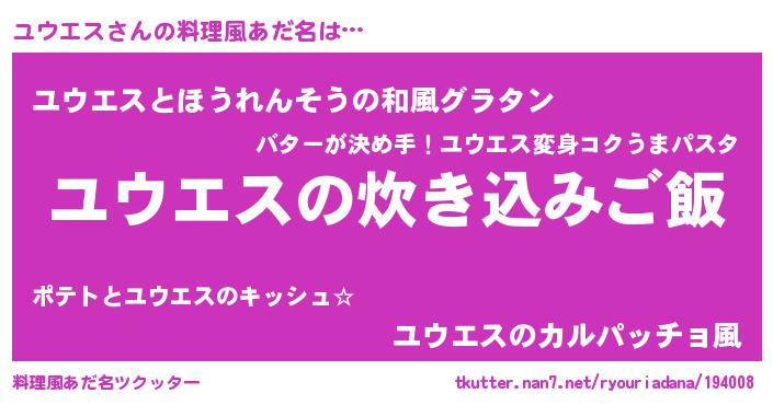 | ヘコむあだ名 | 『ユウぷりん』『ユウエス(笑)』 |