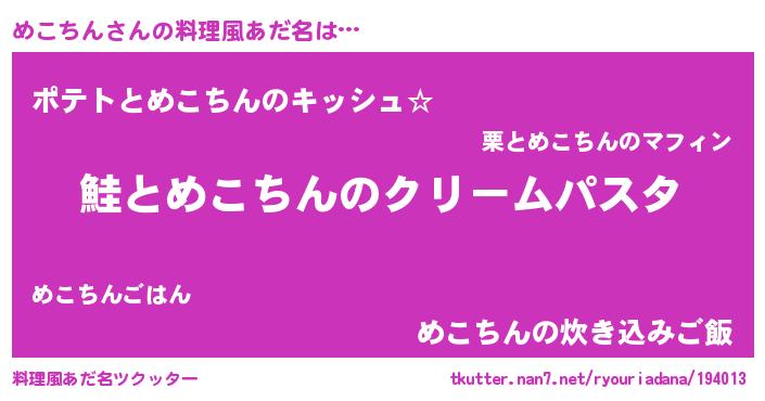 | ヒーロー風カッコイイあだ名 | 『天空の使者めこちん』『黄金騎士メコ』 |