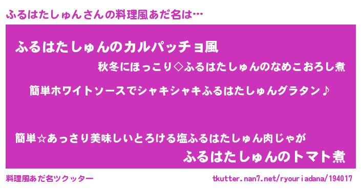 | 女子向けラノベタイトル風あだ名 | 『ふるはたしゅん様がみてる』 |