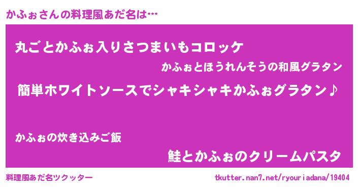 | 女子向けラノベタイトル風あだ名 | 『かふぉ様がみてる』『死神かふぉの再婚』 |