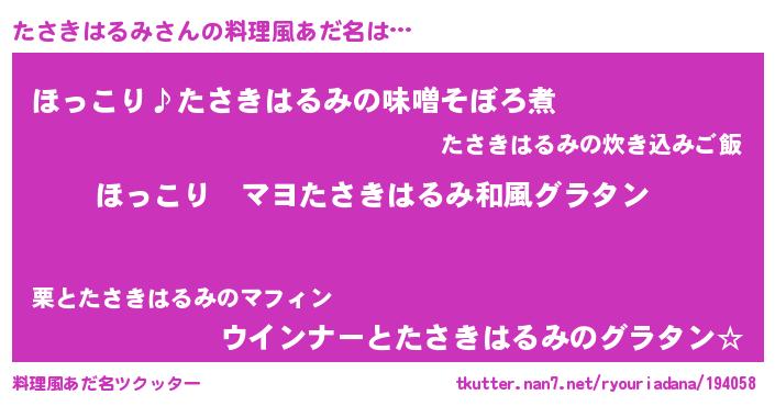 | 男性向けラノベタイトル風あだ名 | 『この素晴らしい世界にたさきはるみを!』 |