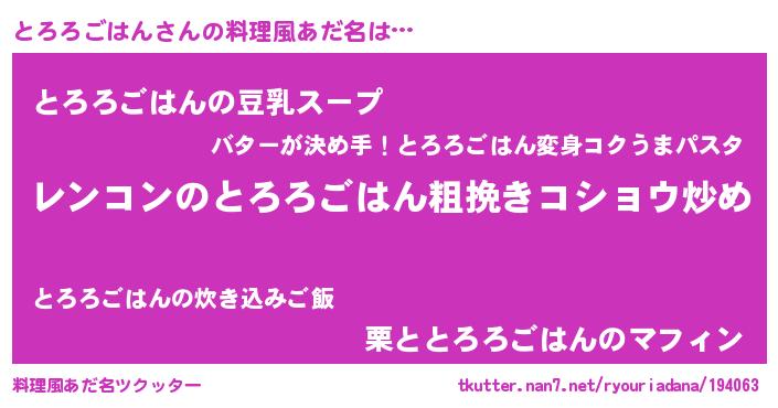 | ヒーロー風カッコイイあだ名 | 『ウルトラ戦士トロロゴハン』 |
