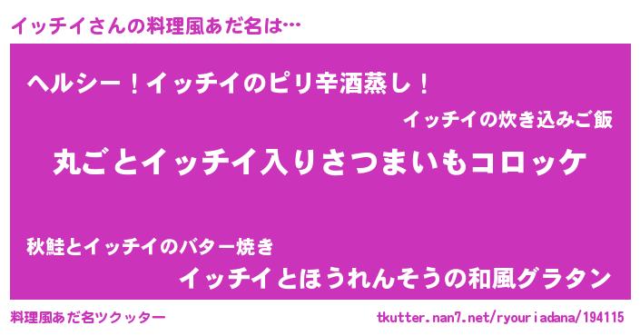 | ヘコむあだ名 | 『イッチイ(苦笑)』『イッお』『豆乳』 |