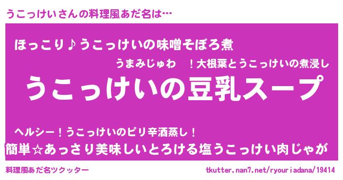 | ヘコむあだ名 | 『うこぷりん』『うこにー』 |