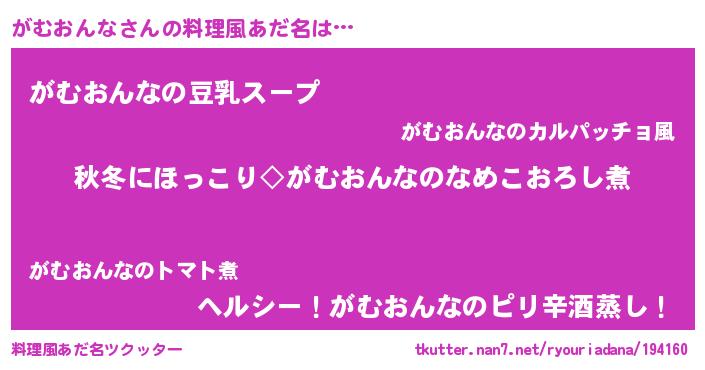 | 胡散臭い通販商品みたいなあだ名 | 『全米が絶賛したサプリメント…その名も「がむおんな」』 |
