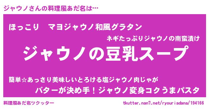 | 男性向けラノベタイトル風あだ名 | 『ダンジョンにジャウノを求めるのは間違っているだろうか』 |