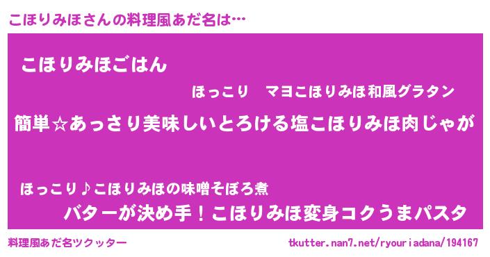 | ヘコむあだ名 | 『こほりみほ(苦笑)』『こほっふぃ~』 |