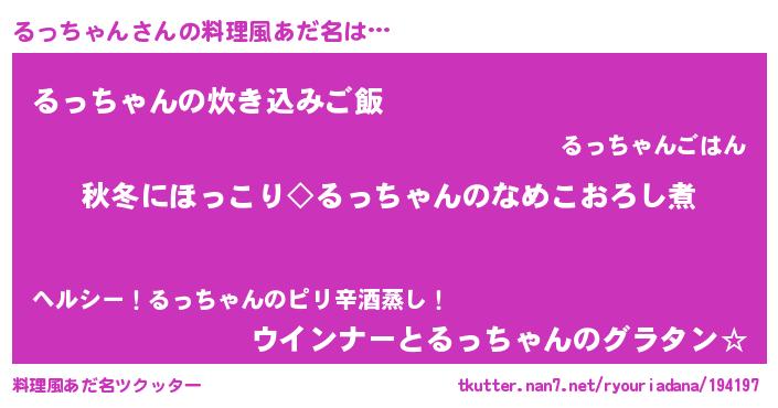 | ヘコむあだ名 | 『酢こんぶ』『るっお』『るっふぇ~』 |
