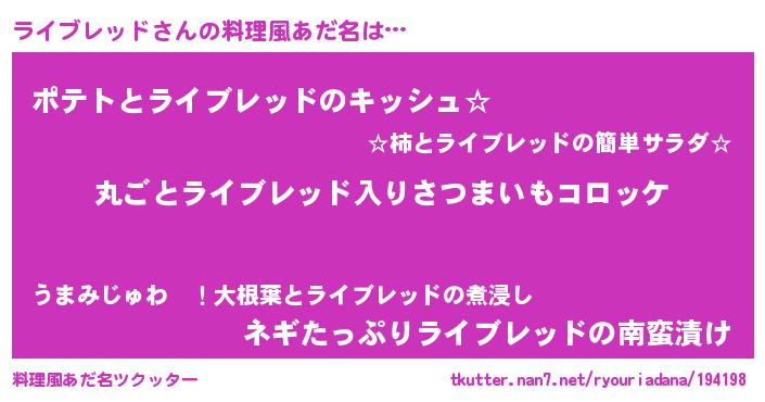 | 男性向けラノベタイトル風あだ名 | 『この素晴らしい世界にライブレッドを!』 |