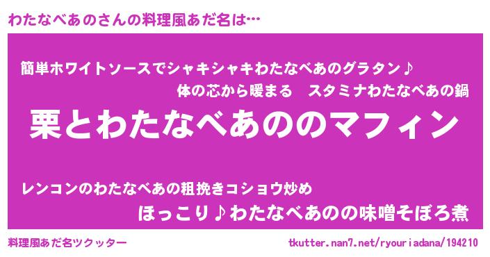 | ピコ太郎風あだ名 | 『ワタ二郎』『ワコ太郎』『ピワ二郎』 |